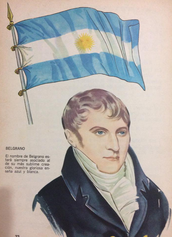 Láminas alusivas, al Día de la Bandera, y la insigne figura histórica, del glorioso Gral. Manuel Belgrano, publicada en las páginas, de distintos libros de lectura, de escuela primaria, correspondientes a las