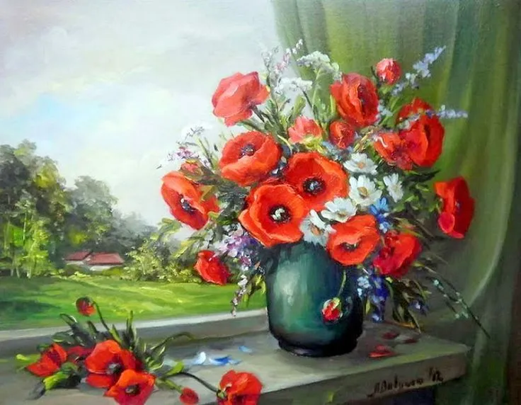 Ramos de flores pintadas al oleo