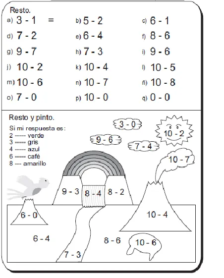Resta y colorea