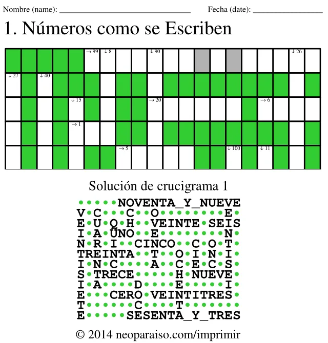 Crucigramas de números con nombre