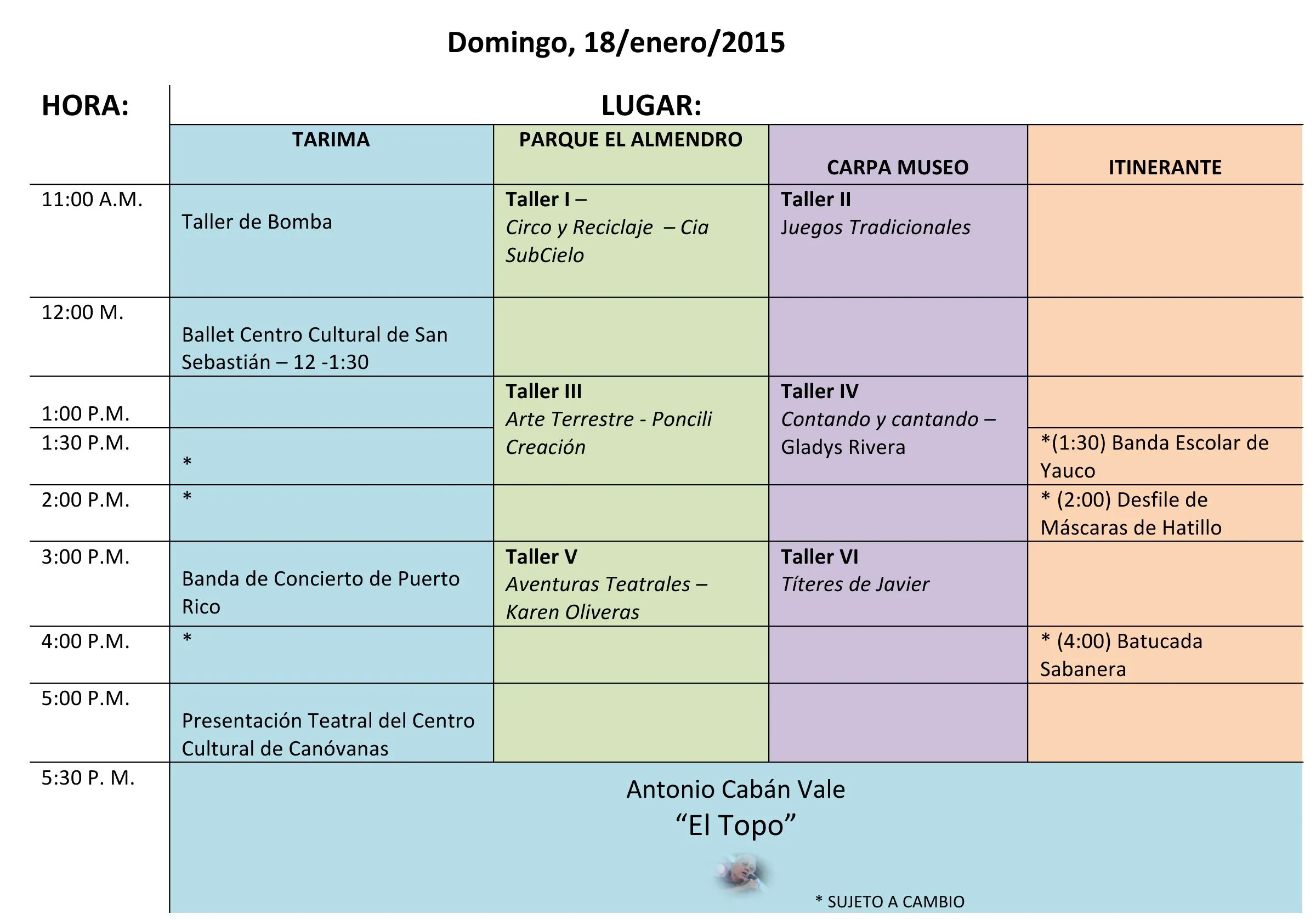 Itinerario de actividades diarias